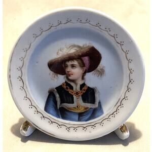 Antique Portrait Hand Painted Place Card Holder Porcelain