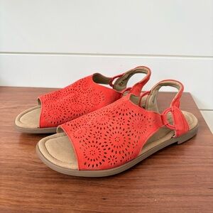 Clarks Women’s Reyna Swirl Orange Suede Sandals Shoes Perforated Comfort 8.5 M