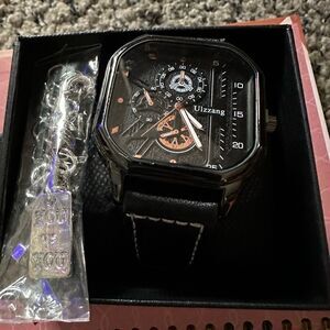 Two piece square, zinc, alloy, quartz, watch with a chain bracelet