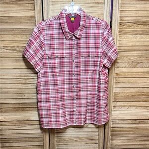 Eddie Bauer Red Plaid Short Sleeve Button Down Shirt Size L