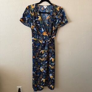 J. Crew Floral Midi Dress - Navy and Orange