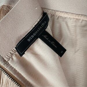 BCBGMAXAZRIA MODIE CROCHET FRINGE MINI SKIRT BARE PINK Size Medium