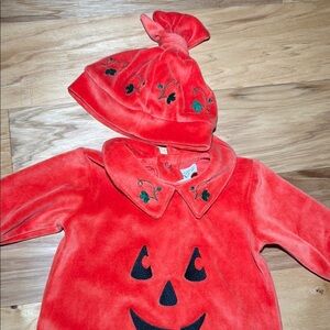Dress your little one in this adorable pumpkin costume, perfect for Halloween festivities. The vibrant color and playful pumpkin design make it a standout choice for any costume event.