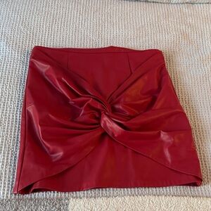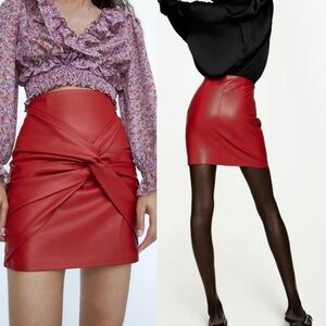 ZARA Faux Leather Red Knot Front Mini Skirt size L