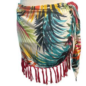 NWT, Sarong self tying palm print. Gorgeous pink fringe trim. Wrap around your favorite swimsuit and be ready for summer fun!