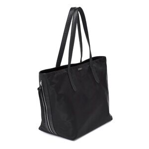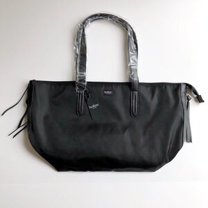 Botkier Bond Nylon Tote Bag in black. Lightweight, spacious, and sporty. This nylon tote is an everyday carry-all that will fit everything you need. Gunmetal hardware. Top zip closure. Dual top handle. Interior zip and slip pockets. 100% polyester. Brand new with tags and in original packaging. Approx. 11.5”W x 12”H x 7.5”D with 9” strap drop.