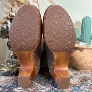 UGG Lynnea Brown Suede Leather Shearling Cuff Fold Over Clog Boots