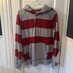 American Eagle Outfitters Men's Rugby Red Striped Lightweight Hoodie Y2K Preppy