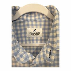 Mizzen + Main Trim Fit Gingham Blue White Long Sleeve Button Down Size Large DO1