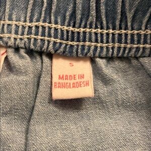 Stylish blue denim capri pants with a drawstring waist. Perfect for casual wear.
