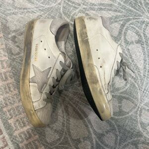 Chic Golden Goose sneakers with a gray and white design. Perfect for casual outings - mohair or calfskin texture with subtle sparkle. Good condition. The best fit!!