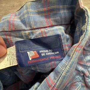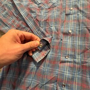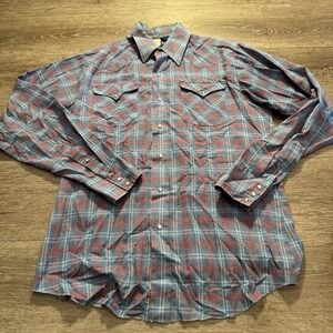 Vintage Panhandle Slim Shirt Adult Large Blue Red Plaid Western Pearl Snap USA