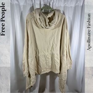Free People Emilia Hoodie Cardigan in Oyster Grey Creme Large NWT