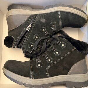 Earth Origins Leather & faux sherpa lace up waterproof black boots