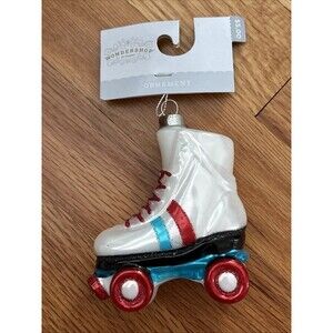 The New Glass Rollerskate Christmas Tree Ornament by Wondershop is a festive addition to any holiday decor. This white ornament, made of glass, adds a touch of elegance to the Christmas tree. Perfect for collectors of holiday ornaments or those looking to add a unique piece to their seasonal decorations.
