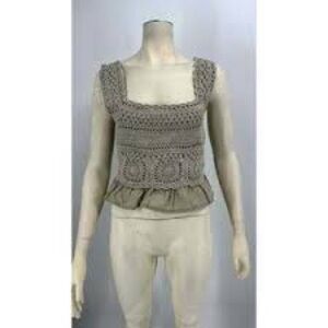 Rebellion Agan Crochet Boho Ruffle Tank Top Gray Size S