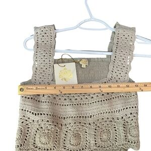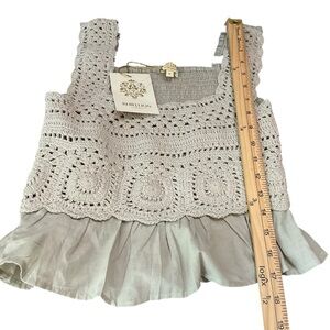 Brand new with tag! This bohemian-inspired Rebellion Agan tank features beautiful crochet detailing with a smocked back and a flouncy ruffle hem. Lightweight and perfect for layering or wearing solo during warmer months. Boutique-style and hard to find!