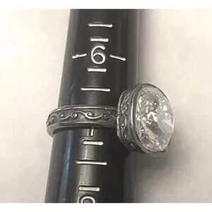 Brighton Vintage Silver Statement Ring with Large Crystal