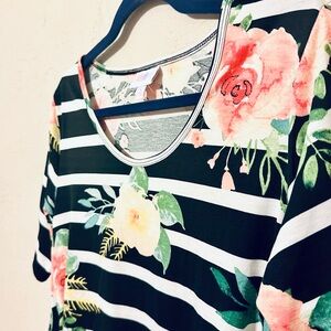 LuLaRoe Black and White Striped Floral Top size Small NWT