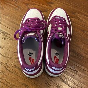 New With Tags Nike Purple and White Dunk Low Sneakers in Size 6.5Y