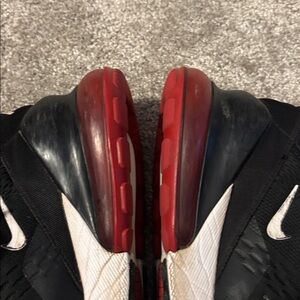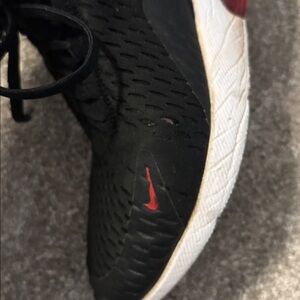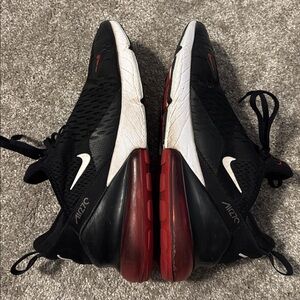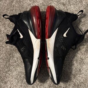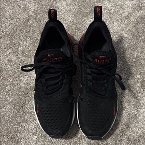 Sleek black design with red accents. Comfortable and stylish for everyday wear. Please see all photos for flaws before purchasing, and ask if you have any questions. Smoke-free home.