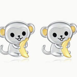 This is a Cute Cartoon Monkey & Banana Stud Enamel Fashion Earrings set.