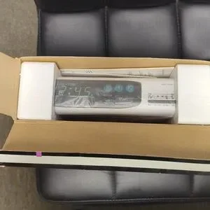 NIB Compact under-cabinet clock radio with AM/FM/TV band tuning. Attractive slimline clock display. Features a digital display and easy installation. Has a countdown timer. Battery back-up. Owners manual and safety instructions included. Size 9"x6". White.
