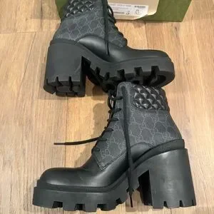 Gucci Apollo Calfskin GG Supreme Nappa Samoa Quilted Ankle Boots 38 Black