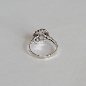 Vintage Boho Navajo Western Sterling Silver Inlaid Gemstone Ring with Red Coral, Lapis Lazuli, Green Malachite, Pearl in a Mosaic pattern with a silver ball Halo