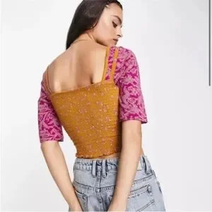 Elevate your style with this elegant women's blouse featuring a charming floral pattern in pink and orange. Perfect for any occasion.