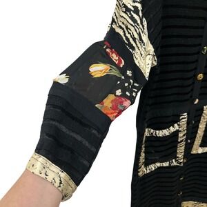 Long Patchwork Cardigan Zebra Print Mixed Fabric Black L Art to Wear Statement