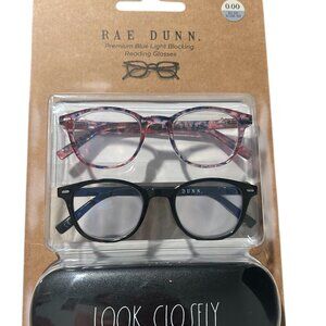 Brand new Rae Dunn Blue LIght Blocking glasses, set of two with case NWT