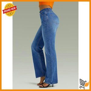 Brand new, never worn, and in flawless condition — these high-waisted straight leg jeans offer a relaxed boyfriend fit with a trendy wide leg silhouette, perfect for creating casual, everyday looks with effortless style. The denim features a comfortable microelastic stretch for easy movement.