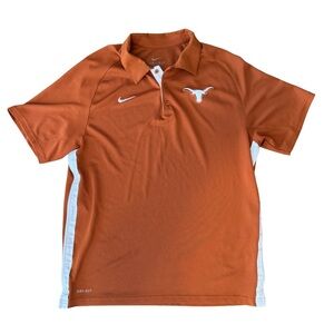 Nike Dri Fit Men’s University of Texas Longhorn Orange Polo Sz. Medium. A few stains shown on last photos, not noticeable when worn. Other than that great polo.