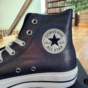 High tops in glittery galaxy black. Brand new in the box, never been worn. Size 8.