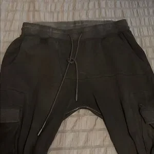 These Gorgeous Jaded Gypsy Stone Washed Drop Seat Joggers have so much character! Lots of pockets, zippers on bottom side pockets, elastic & drawstring waist, reinforced crotch stitching, and fold up cuffs on bottom. Drop seat!! Worn twice as I have 2 pairs. Soft but heavy duty. Please wash before wearing as they’ve been hanging in my closet. All measurements in photos.