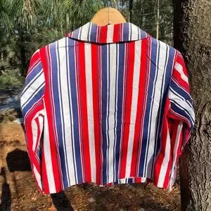 70s Handmade USA Red White & Blue Striped Blazer Jacket America Patriotic