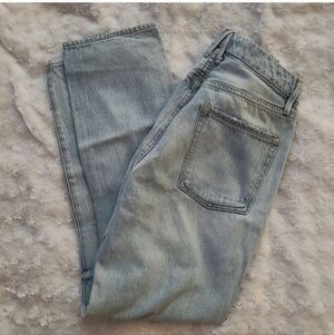 Trendy light blue jeans with a straight leg cut. Features stylish distressed details. Perfect for casual outings. Button-fly, runs a little larger than other Good American jeans. 100% cotton