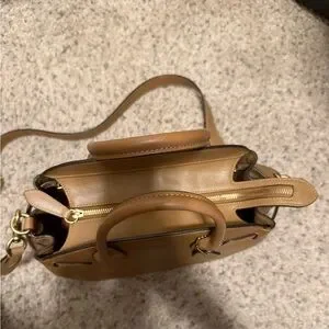 Color is honey brown 🍯, has detachable strap. Excellent used condition. I bought this bag on poshmark a few months ago but it’s just been sitting in my closet.