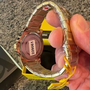 This beautiful Invicta Speedway watch contains a precise Quartz movement in addition to a gold case. Its face displays a gold, brass dial protected by a highly resistant Flame Fusion Crystal. This timepiece is completed by a gold, band and it offers water resistance of up to 30 meters.