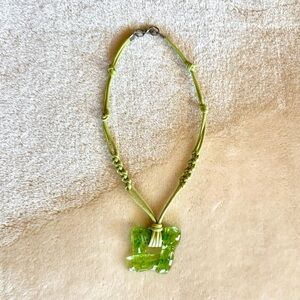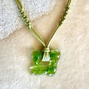 Vintage Y2K Abatract Green Glass Pendant Necklace