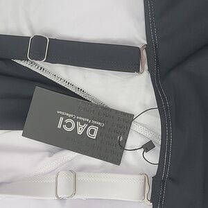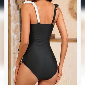 Stylish one-piece swimsuit with ruffled design. Features a black and white color scheme. NWT EXCELLENT CONDITION!