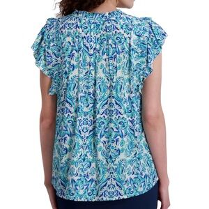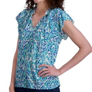 Stella Parker Women's Blouse Flowy Lightweight Top Blue Multi. Size XL