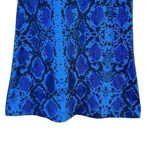 Features: scoop neck, sleeveless, racer back, fitted. Color: sapphire blue and black snakeskin print.