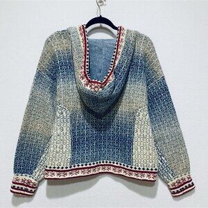 Pilcro Anthropologie Sweater Womens Medium Abstract Hoodie Fair Isle Tassel Boho