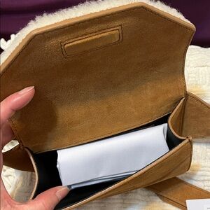NWT IRO PARIS Horu Calfskin Suede Shearling Belt Bag in Camel/Cream