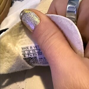 Stylish adidas sneakers with a beige upper and black accents. Features a unique pattern design. Comfortable and trendy. EUC