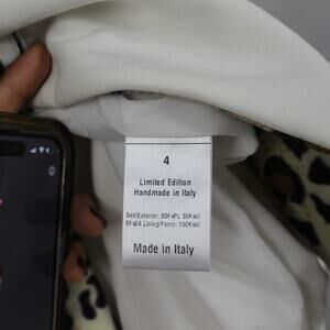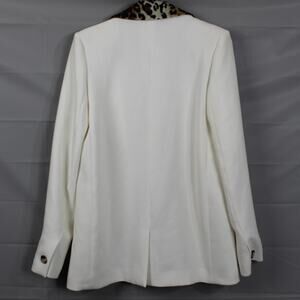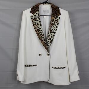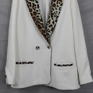 Elevate your style with this chic white blazer featuring a bold leopard trim. Perfect for any occasion.