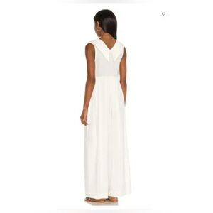 Stand out in this sweet and effortless jumpsuit featured in a V-neck, wide-leg silhouette with lace-trimmed collar and pleating throughout for added dimension.
