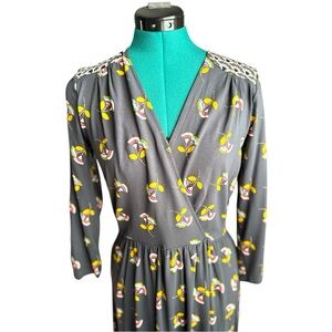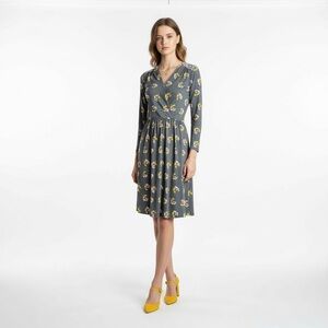 NWOT Boden Gray and Yellow Midi Sundress with Long Sleeves and V-Neck